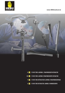 www.HEBUmedical.de 2 FK-WO TORS Laryngo- Pharyngoskop Retraktor FK-WO TORS Laryngo-Pharyngoscope Retractor FK-WO TORS Laryngo-Pharyngoscope Écarteur FK-WO TORS Retractor laringofaríngeo HB5878-00 FK-WO TORS Laryngo- Pharyngoskop Retraktor Komplettset FK-WO TORS Laryngo-Pharyngoscope Retractor Complete Set FK-WO TORS Laryngo-Pharyngoscope Écarteur Ensemble complet FK-WO TORS Retractor laringofaríngeo Juego completo HB5878-05 FK-WO TORS Grundrahmen FK-WO TORS base frame Cadre de base FK-WO TORS Bastidor base FK-WO TORS Der FK-WO TORS Laryngo-Pharyngoskop-Retraktor wurde speziell für TORS (Trans-Oral Robotic Surgery) entwickelt und ermöglicht eine stabile, großflächige Freilegung des oberen Aerodigestivtraktes, insbesondere Oropharynx, Hypopharynx, Larynx und Zungenbasis. Sein modulares Design mit austauschbaren Spateln erlaubt die präzise Anpassung an verschiedene anatomische Bedingungen und Operationsanforderungen. Das nicht-tubuläre Konzept bietet eine hervorragende Sicht, erleichtert den Zugang für Instrumente und Roboterarme und unterstützt TORS, Mikrochirurgie sowie Laseroperationen. Mit atraumatischen Konturen, sicherer Verriegelung und ergonomischer Formgebung ermöglicht der Retraktor ein belastungsarmes Arbeiten und schafft eine optimale Freilegung der Supraglottis, des Piriformsinus und sogar schwer zugänglicher Läsionen, wodurch ein effizienter und sicherer OP-Ablauf unterstützt wird. Le rétracteur laryngo-pharyngoscope FK-WO TORS a été spécialement développé pour la chirurgie robotique transorale (Trans-Oral Robotic Surgery) et permet une exposition stable et étendue des voies aérodigestives supérieures, en particulier de l‘oropharynx, de l‘hypopharynx, du larynx et de la base de la langue. Sa conception modulaire avec des lames interchangeables permet une adaptation précise à différentes conditions anatomiques et exigences chirurgicales. Son concept non tubulaire offre une excellente visibilité, facilite l‘accès des instruments et des bras robotiques et prend en charge la chirurgie transorale robotisée, la microchirurgie et la chirurgie au laser. Avec ses contours atraumatiques, son verrouillage sécurisé et sa conception ergonomique, le rétracteur permet un travail sans stress et crée une exposition optimale de la supraglottis, du sinus piriforme et même des lésions difficiles à atteindre, favorisant ainsi des procédures chirurgicales efficaces et sûres. The FK-WO TORS Laryngo-Pharyngoscope Retractor was developed specifically for TORS (Trans-Oral Robotic Surgery) and enables stable, large-area exposure of the upper aerodigestive tract, in particular the oropharynx, hypopharynx, larynx, and base of the tongue. Its modular design with interchangeable blades allows precise adaptation to different anatomical conditions and surgical requirements. The non-tubular concept offers excellent visibility, facilitates access for instruments and robotic arms, and supports TORS, microsurgery, and laser surgery. With atraumatic contours, secure locking, and ergonomic design, the retractor enables low-stress working and creates optimal exposure of the supraglottis, piriform sinus, and even hard-to-reach lesions, supporting efficient and safe surgical procedures. El retractor laringofaríngeo FK-WO TORS se ha desarrollado específicamente para la cirugía robótica transoral (Trans-Oral Robotic Surgery) y permite una exposición estable y amplia del tracto aerodigestivo superior, en particular de la orofaringe, la hipofaringe, la laringe y la base de la lengua. Su diseño modular con hojas intercambiables permite una adaptación precisa a diferentes condiciones anatómicas y requisitos quirúrgicos. El concepto no tubular ofrece una excelente visibilidad, facilita el acceso de los instrumentos y los brazos robóticos y es compatible con la cirugía transoral robótica, la microcirugía y la cirugía láser. Con contornos atraumáticos, bloqueo seguro y diseño ergonómico, el retractor permite trabajar sin esfuerzo y crea una exposición óptima de la supraglotis, el seno piriforme e incluso las lesiones de difícil acceso, lo que favorece la realización de procedimientos quirúrgicos eficientes y seguros. D E F GB Im Set sind folgende Artikel enthalten: The set includes the following items: Le kit comprend les éléments suivants: Le kit comprend les éléments suivants: - HB5878-05 - HB5878-10 - HB5878-11 - HB5878-12 - HB5878-13 - HB5878-14 - HB5878-15 - HB5878-16 - HB5878-17 - HB5878-18 - HB5878-20 - HB5878-31 - HB5878-40 - HB5878-41 - HB5878-50 - HB5878-60 - HB5878-90